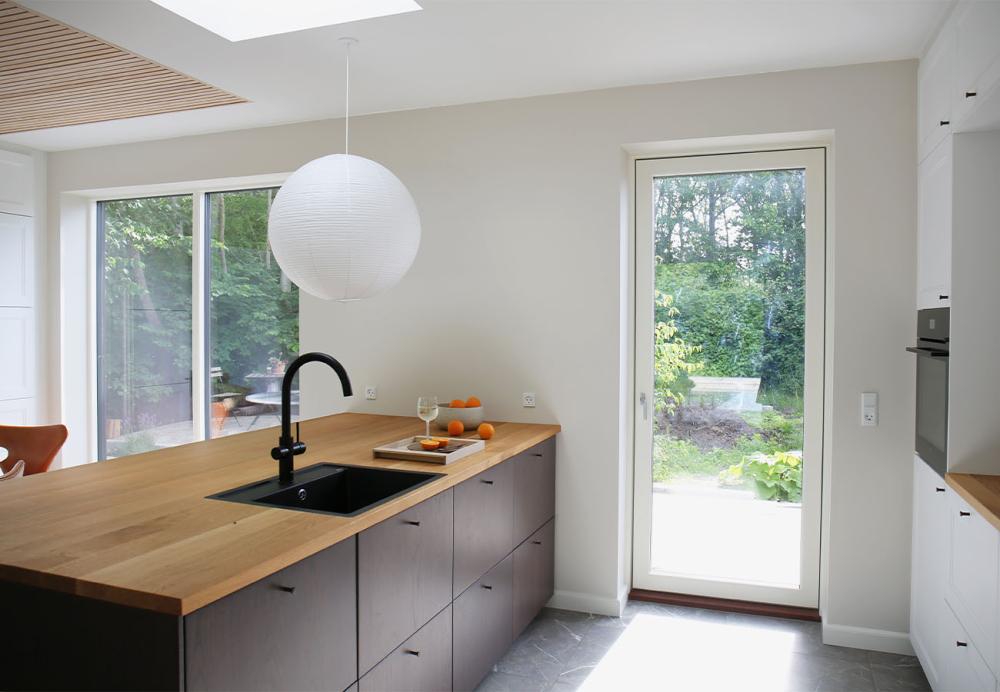 Influenceren, Dorte, og influencerparret, Jesper og Johanne, der står bag profilen Voresskolehus, har alle skabt en bedre forbindelse mellem deres terrasser og køkkener med terrassedør fra køkkenet og ud til haven.