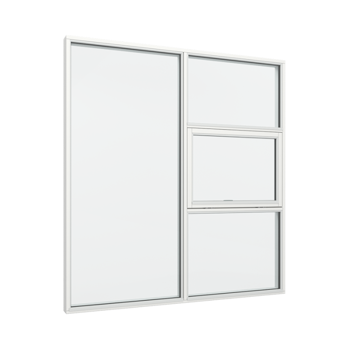 1 fag med 1 glasfelt samt 1 fag med 1x3 glasfelter og topstyret vindue midt (DK-TR-U2-11-TM-13)