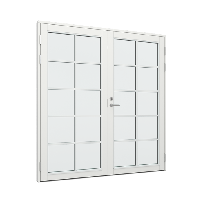 Bemærk ved indadgående dobbeltdøre Når du skal vælge åbningsretning på din dobbeltdør, er det af stor vigtighed at kontrollere, om døren kan risikere at blive udsat for slagregn og blæst uden læ forhold. Konstruktionsmæssigt kan dobbelt indadgående døre nemlig ikke sikres 100 % mod vandindtrængning ved vejrforhold som eksempelvis slagregn. For at sikre optimal lukketæthed skal 3-punktslåsen være aktiveret og vi anbefaler altid udadgående døre hvis døren ikke er i læ. Der ydes således ikke garanti mod vandindtrængning på baggrund af ovenstående forhold. Det er normalt at Branchen tages forbehold for dette, vi har valgt at gøre dette forbehold mere synlig, så de som kan vælge udadgående døre, også vælger udadgående døre, inden de køber døren.