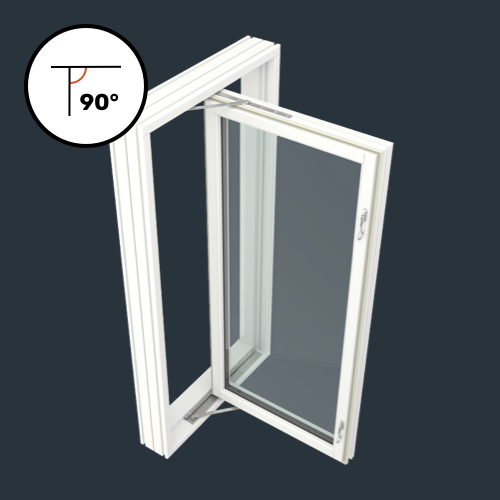 Her vælger du hvilket montagebeslag du ønsker. Hvis du bor på 1. sal eller højere, anbefaler vi, at du køber dit vindue med et pudsebeslag. Med et pudsebeslag kan du dreje dit vindue, så du let kan pudse det fra indvendig side.