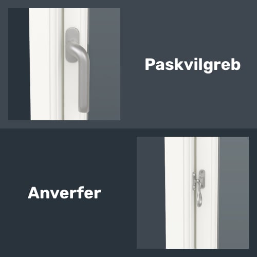 Kun muligt hvis paskivlgreb er tilvalgt under lukkesystem vindue