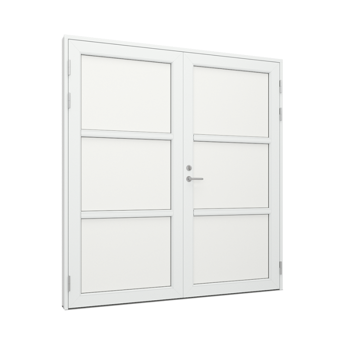 Bemærk ved indadgående dobbeltdøre Når du skal vælge åbningsretning på din dobbeltdør, er det af stor vigtighed at kontrollere, om døren kan risikere at blive udsat for slagregn og blæst uden læ forhold. Konstruktionsmæssigt kan dobbelt indadgående døre nemlig ikke sikres 100 % mod vandindtrængning ved vejrforhold som eksempelvis slagregn. For at sikre optimal lukketæthed skal 3-punktslåsen være aktiveret og vi anbefaler altid udadgående døre hvis døren ikke er i læ. Der ydes således ikke garanti mod vandindtrængning på baggrund af ovenstående forhold. Det er normalt at Branchen tages forbehold for dette, vi har valgt at gøre dette forbehold mere synlig, så de som kan vælge udadgående døre, også vælger udadgående døre, inden de køber døren.