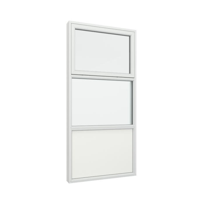 med 2 glasfelter, 1 fyldning i bunden og topstyret vindue i toppen (DK-TRAL-U1-13-TT-1F)