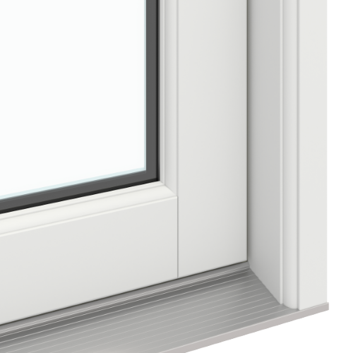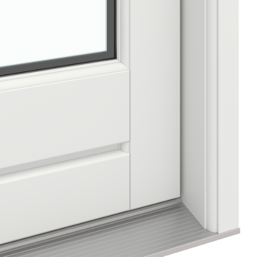 Terrassedøre, yderdøre og sidepartier, der produceres i Danmark, har ikke dobbelt spændestykke (også kendt som rammestykke).
