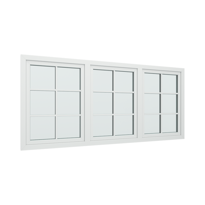 med to åbninger og en fastkarm med ramme i midten og 2x3 glasfelter (PVC_EU-DKVHFKRM3-23)