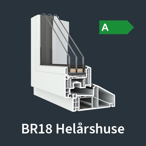 Energiklasse: 2-lags Euroline PVC Rehau 70 mm. karm - BR18 Fritidshuse 0,00 kr.
