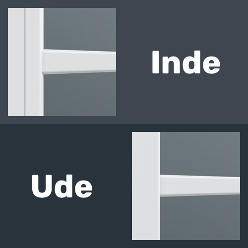 Alle elementer har standart indelinger. Men du kan her vælge om du ønsker at sprosserne/glasset skal flugte med andre elementer på samme ordre. Venligst noter i kommentarfeltet, eller i 'placering', hvilke elementer som skal flugte. (Du finder kommentarfeltet i din indkøbskurv)