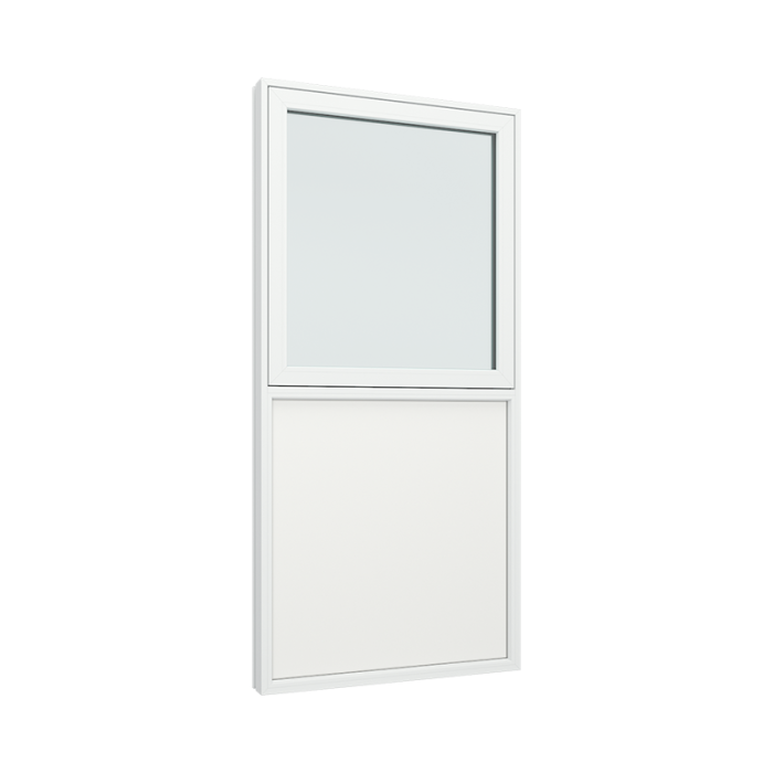 med 1 glasfelt, 1 fyldning i bunden og topstyret vindue i toppen (PVC-U1-11-TT-1F)