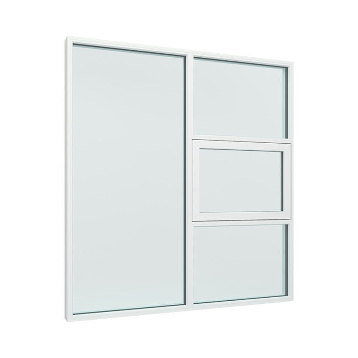 1x3 glasfelter og topstyret vindue midt, samt 1 fag med 1 glasfelt (PVC-U2-13-TM-11)
