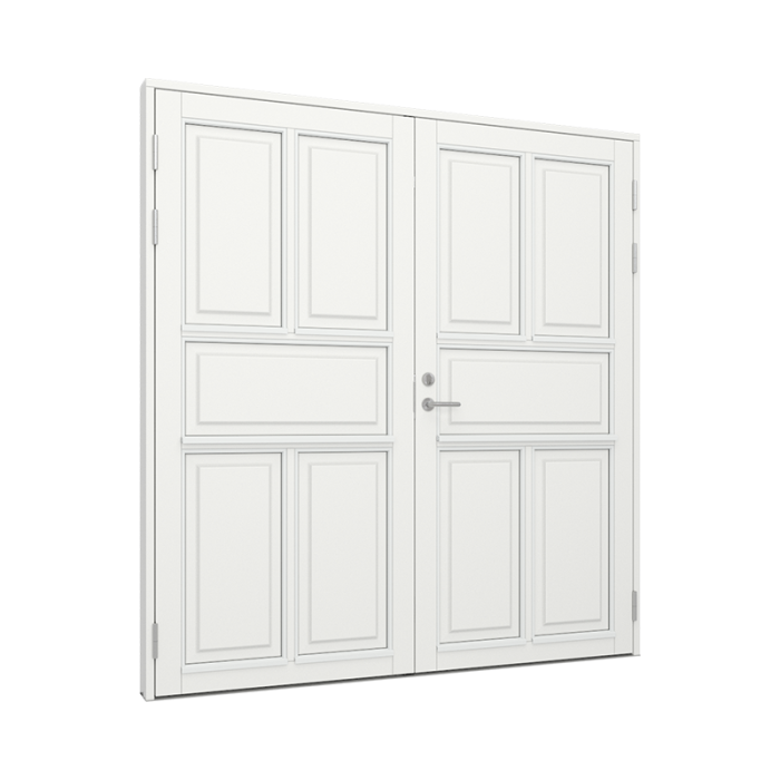Bemærk ved indadgående dobbeltdøre Når du skal vælge åbningsretning på din dobbeltdør, er det af stor vigtighed at kontrollere, om døren kan risikere at blive udsat for slagregn og blæst uden læ forhold. Konstruktionsmæssigt kan dobbelt indadgående døre nemlig ikke sikres 100 % mod vandindtrængning ved vejrforhold som eksempelvis slagregn. For at sikre optimal lukketæthed skal 3-punktslåsen være aktiveret og vi anbefaler altid udadgående døre hvis døren ikke er i læ. Der ydes således ikke garanti mod vandindtrængning på baggrund af ovenstående forhold. Det er normalt at Branchen tages forbehold for dette, vi har valgt at gøre dette forbehold mere synlig, så de som kan vælge udadgående døre, også vælger udadgående døre, inden de køber døren.