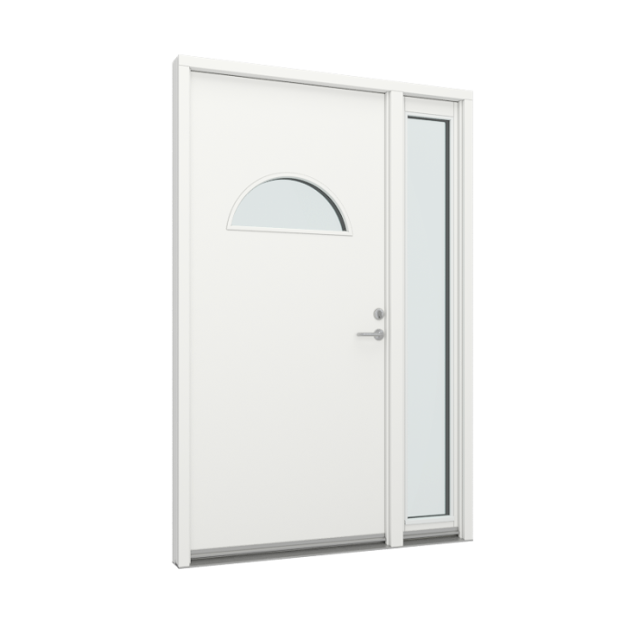 dør glat med halvcirkel glasfelt, samt sideparti med 1 glasfelt (TR-DP-002-11-IN)