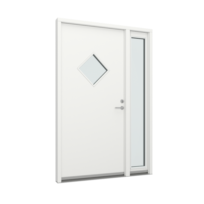 dør glat med kvadrat drejet 45 grader glasfelt, samt sideparti med 1 glasfelt (TR-DP-004-11-IN)