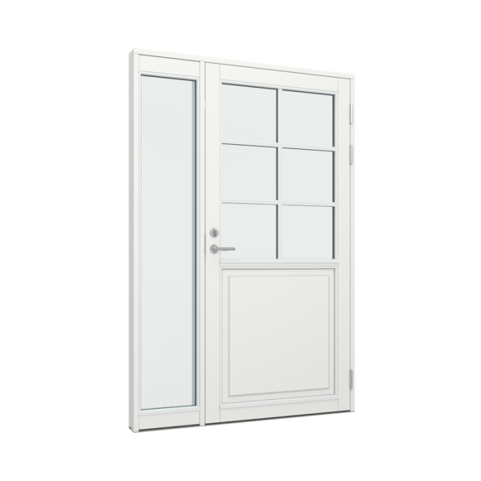 dør med 1 fyldning og 2x3 glasfelter, samt sideparti med 1 glasfelt (TR-DP-23-11-1F-11)