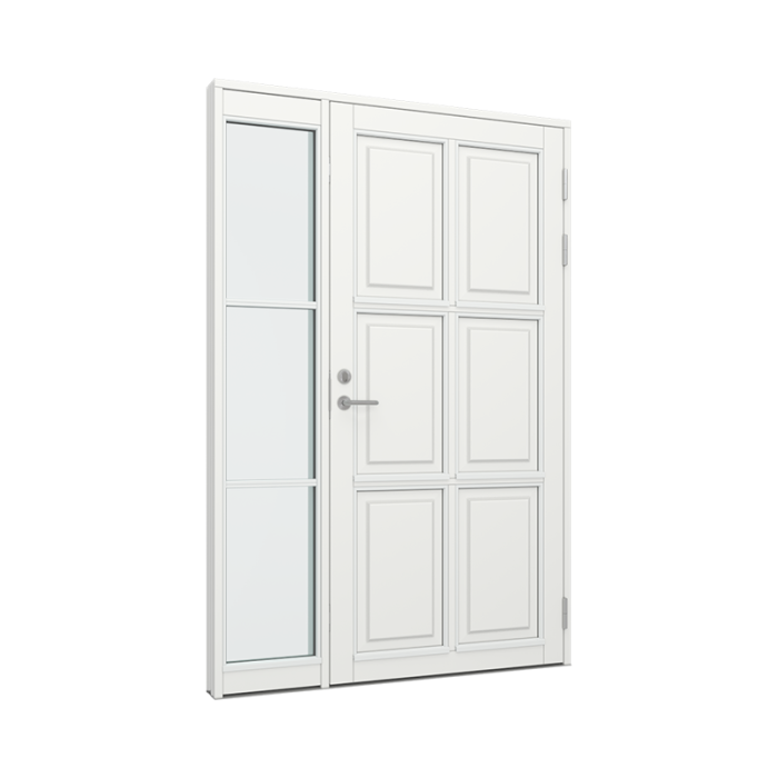 dør med 2x3 fyldninger, samt sideparti med 3 glasfelter (TR-DP-23F-13-T)