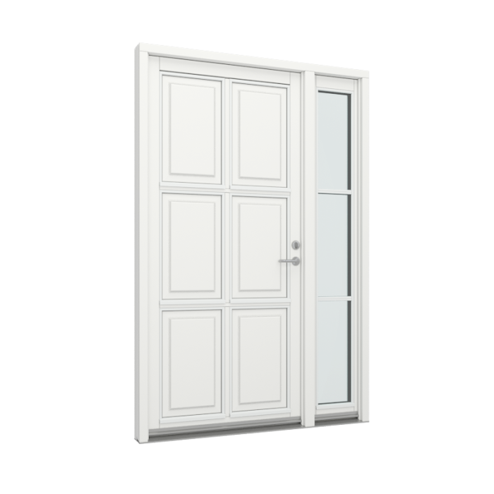 dør med 2x3 fyldninger, samt sideparti med 3 glasfelter (TR-DP-23F-13-T-IN)