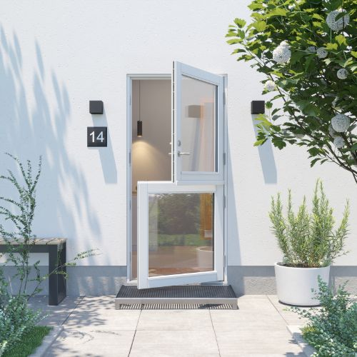 Her kan du vælge, hvordan dit element skal åbne. Vær opmærksom på at halvdøre altid åbnes ud af. På den nederste del af døren er der monteret et paskvilgreb og på på øverste halvdel er der monteret greb og cylinder.