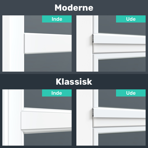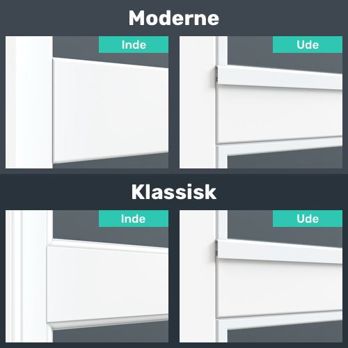 Vælg her mellem en klassisk profil med udfræsede kanter eller en moderne profil med afrundede kanter.
