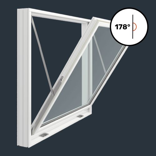 Vinduer med vendebeslag kan ikke holde sig åbne, da de ikke kan fastlåses i en åben udluftningsposition. Ønskes dette bør du vælge et element med almindeligt topstyret beslag.