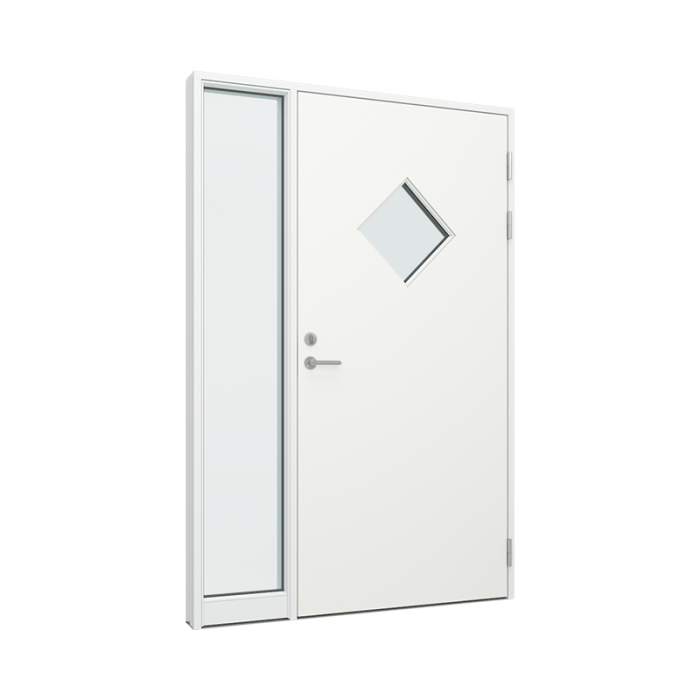 dør glat med kvadrat drejet 45 grader glasfelt, samt sideparti med 1 glasfelt (TRAL-DP-004-11)