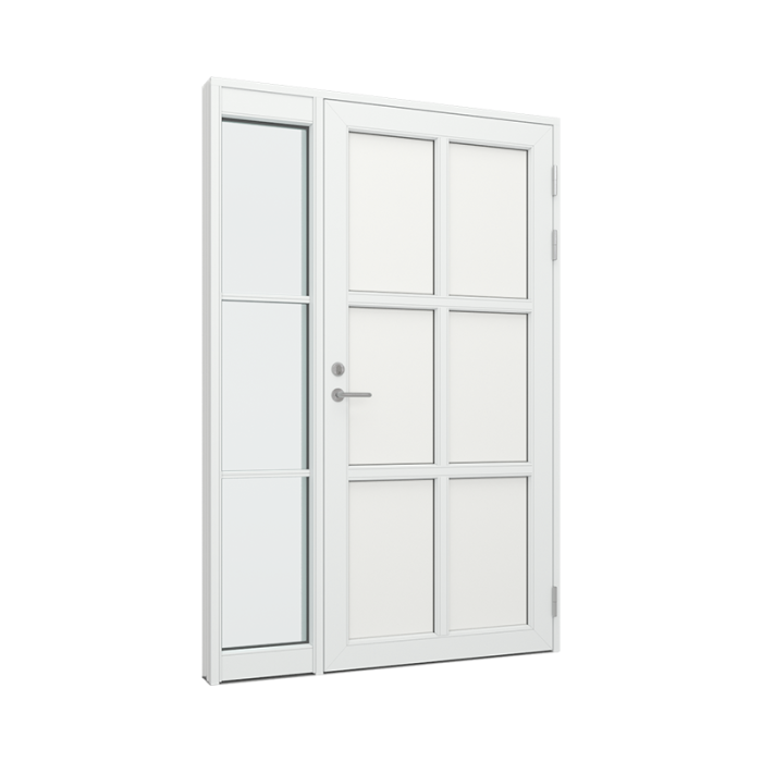 dør med 2x3 fyldninger, samt sideparti med 3 glasfelter (TRAL-DP-23F-13-T)
