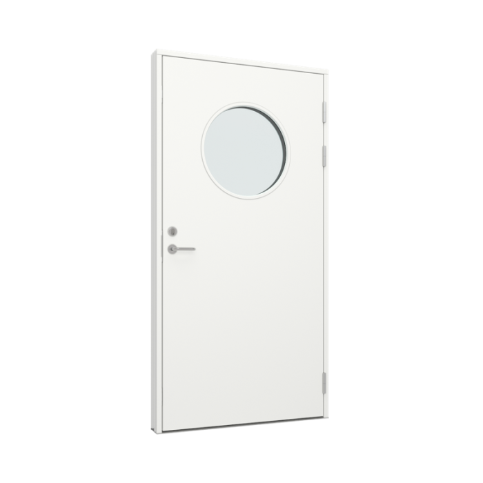 glat med stor cirkel glasfelt (Trædør med Træ/alu karm) - Glasfelt varierer efter dørens bredde - se snittegninger under "info" (TRAL-PL1-4)