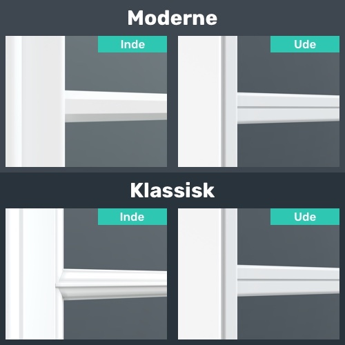 Her kan du vælge, hvilken type sprosse du ønsker. Energisprosser er i alu udvendigt, for længere levetid og mindre vedligehold.